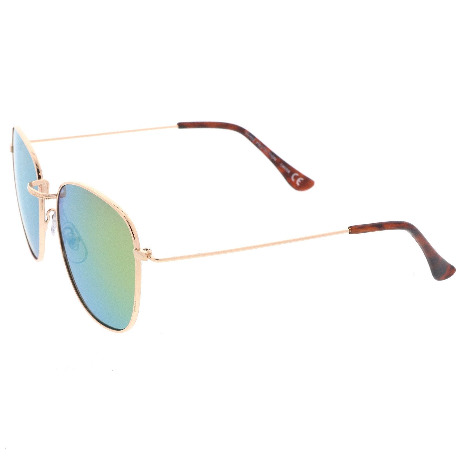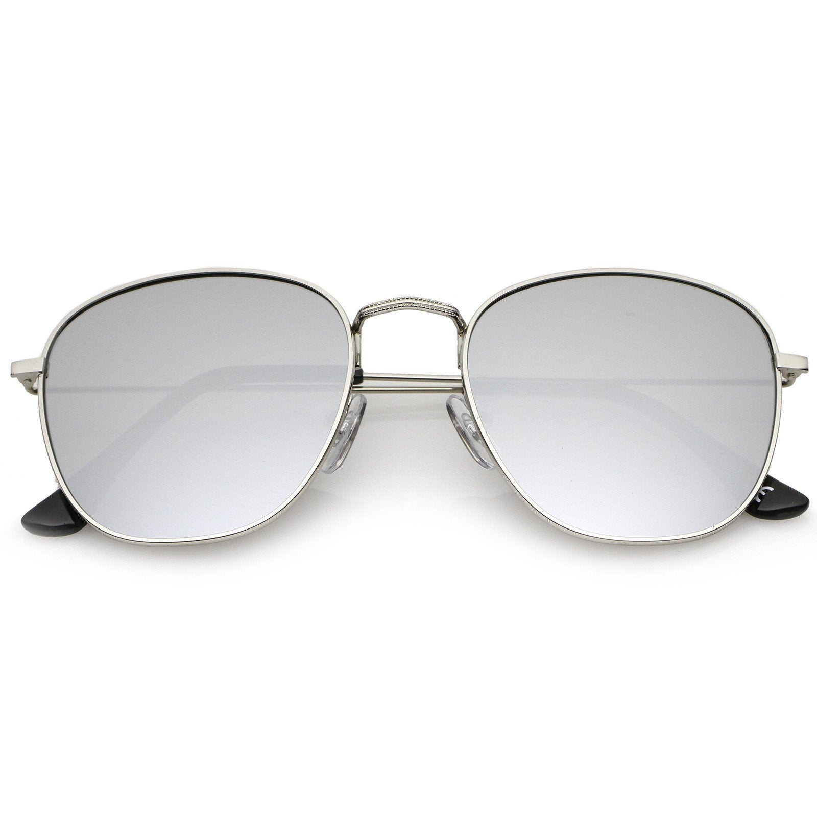 A classic style that can be paired with any look, these square sunglasses are exquisitely designed with a full metal frame and ultra-slim metal temples. Stunning colored mirror flat lenses add eye-catching appeal, while a textured nose bridge gives off a luxe feel. Effortless and minimal, these square sunglasses are great for everyday wear. Made with a metal based frame, English style nose pieces, metal hinges, and reflective UV400 protected lenses.